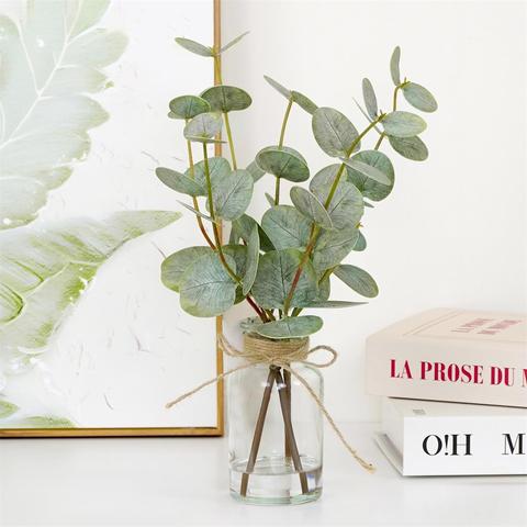 Yeşil yapay okaliptüs, noel cadılar bayramı için okul merkezlerine geri cam vazo ve sahte su ile kaynaklanıyor